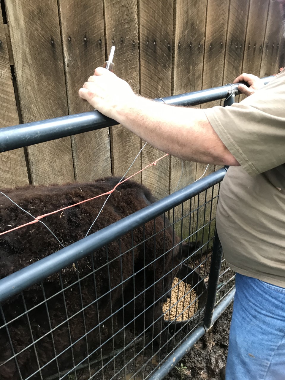 A treat we totally deserve after the second round of antibiotic shots for one of the calves! We are getting better at this process, and/or the calf is getting less nervous because we didn’t kill him the last time! Still, I’m pretty sure that the list of “things that we need to make farming a little easier” has grown to include at least a headgate.