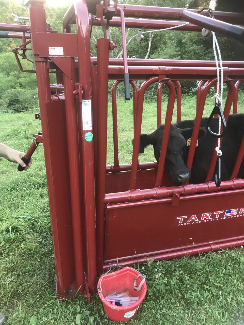 USING the new toys – Three cows in need of a shot, who readily approach us any time we shake a bucket, who will eat without issue within the pen of “the sweep”(my name for it). Sounds like it ought to have been a cake walk! Nope – not quite!