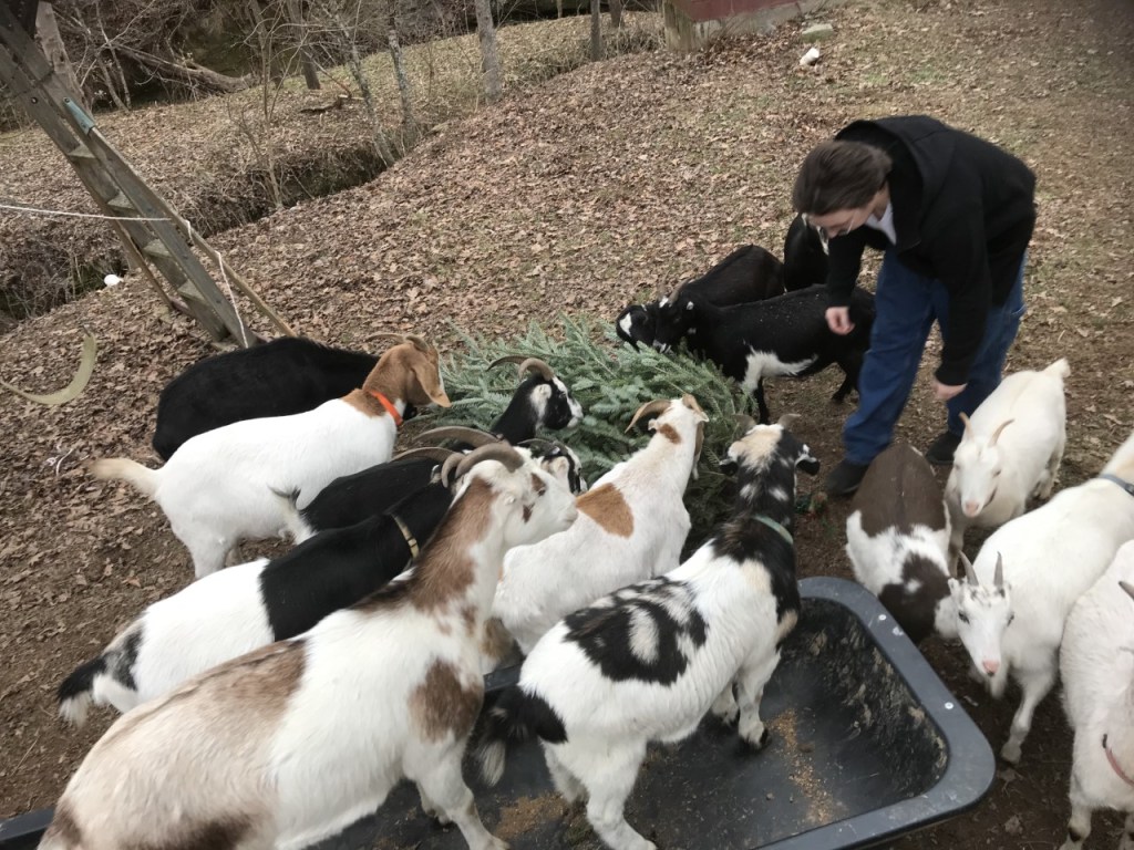 It’s mud season! We have made progress toward working around the mud. Feeding the goats in the backyard makes it muddy – but on the upside I do not have to actually step foot in the mud to feed the goats.
