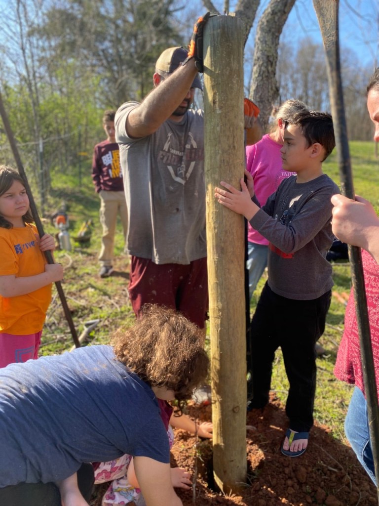 My wonderful brother-in-law has already offered to be the tractor driver so we can set the rest of the posts, and my son is pretty good at the cross-wire part, and the cutest work crew will return soon. God is good!