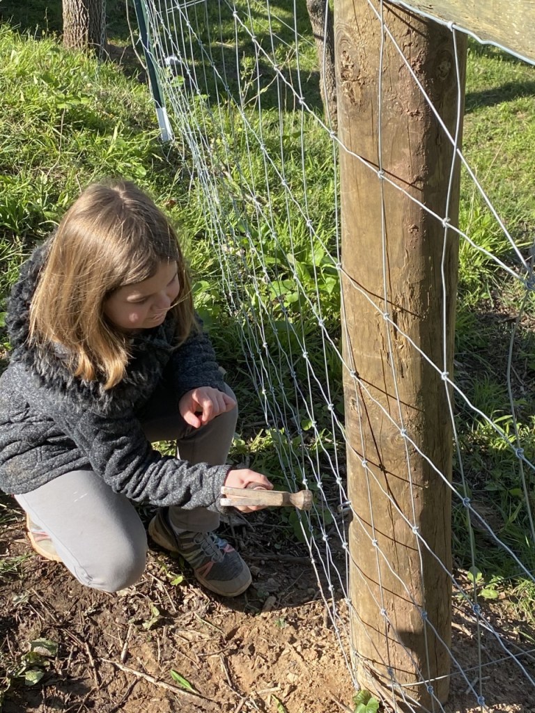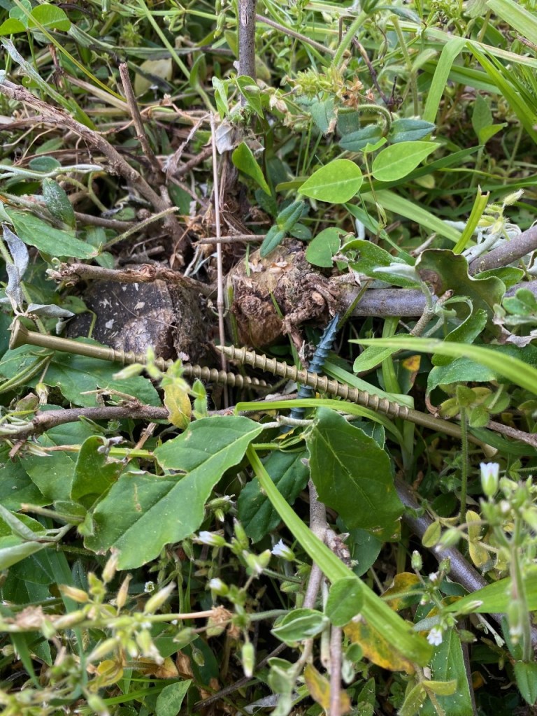 So, one afternoon Jim and I were up the hill just putting up a few cross posts. Not too difficult, no tamping or post-hole-digging involved. We were making marvelous progress until –